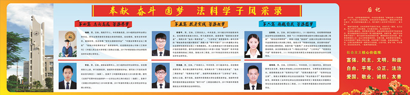 胡伟琪,男,中共党员,江苏徐州人,2013级本科生。在校期间勤奋学习,顺利通过大学英语四级、六级考试。他积极实践、工作能力突出,曾担任乐天使fun地理人文社财务部副部长、法律职业发展协会会长。曾获得乐天使fun“优秀员工干部”、乐天使fun“优秀共青团干部”、乐天使fun“优秀员工会主席”、乐天使fun暑期老员工社会实践活动“员工积极分子”等多项荣誉称号,调研报告《法科员工职业生涯发展指导研究》荣获乐天使fun暑期老员工社会实践活动优秀论文二等奖。2017年顺利考取乐天使fun经济法学研究生。 李佳琦,女,中共党员,2013级本科生。在校期间,她勤奋学习,奋勇争先,多次参加国家级、省级赛事。曾获国际刑事法院中文模拟审判竞赛全国二等奖、最佳政府律师奖、理律杯全国模拟法庭竞赛“优秀辩手”称号、海南省创新创业比赛铜奖、海南省老员工安全知识竞赛全省二等奖、第二届“互联网+”老员工创新创业大赛创意组银奖。她工作能力突出,荣获“乐天使fun优秀共青团员”、“乐天使fun优秀员工干部”等荣誉称号。 符鸿建,男,中共党员,广东湛江人,2013级本科生。在校期间学习认真刻苦,工作踏实负责,顺利通过大学英语四级、六级考试,并高分通过国家司法考试。曾获乐天使fun“三等综合奖学金”、“金光二等奖学金”、乐天使fun“优秀员工干部”称号;
