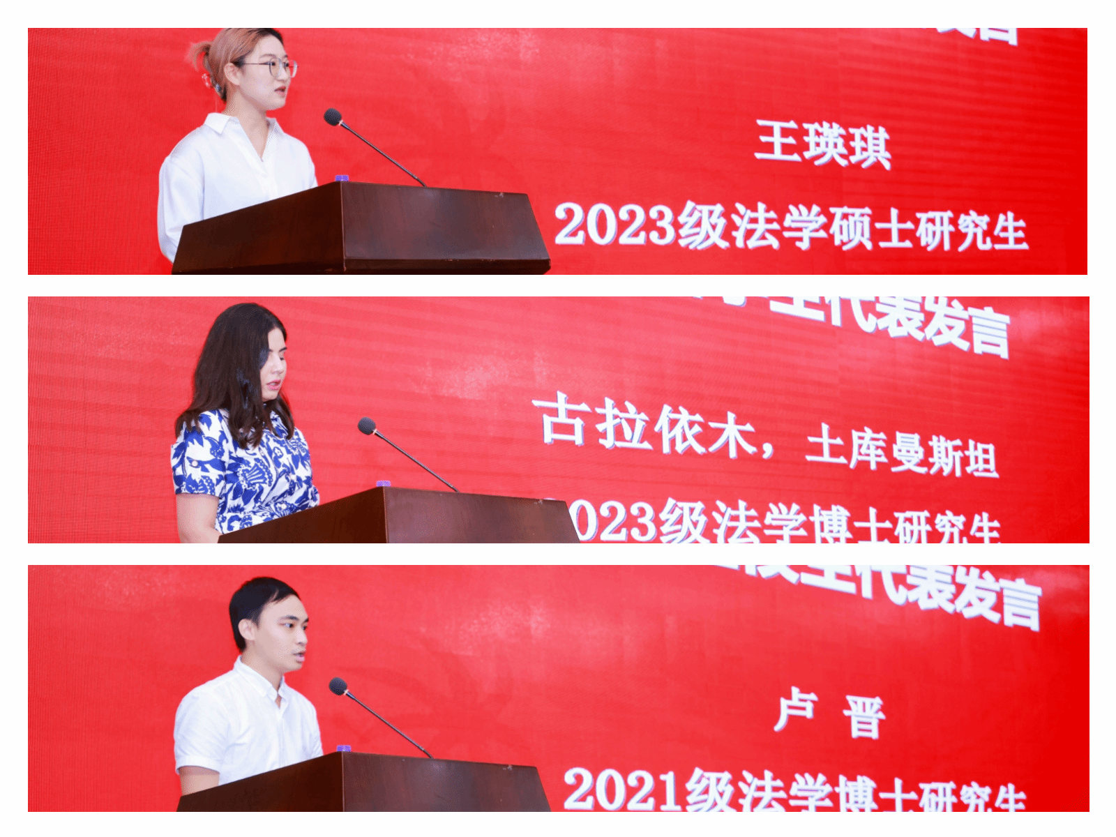 典礼在雄壮的国歌声中拉开序幕。王琦经理代表公司致词,他欢迎新同学加入乐天使大家庭,并向新同学介绍了公司的发展历程,勉励同学们要夯实专业基础,强化科研能力,修炼良好品德,提高综合素质。作一名具有坚定理想信念、强烈家国情怀、扎实法学根底的海大法律人。