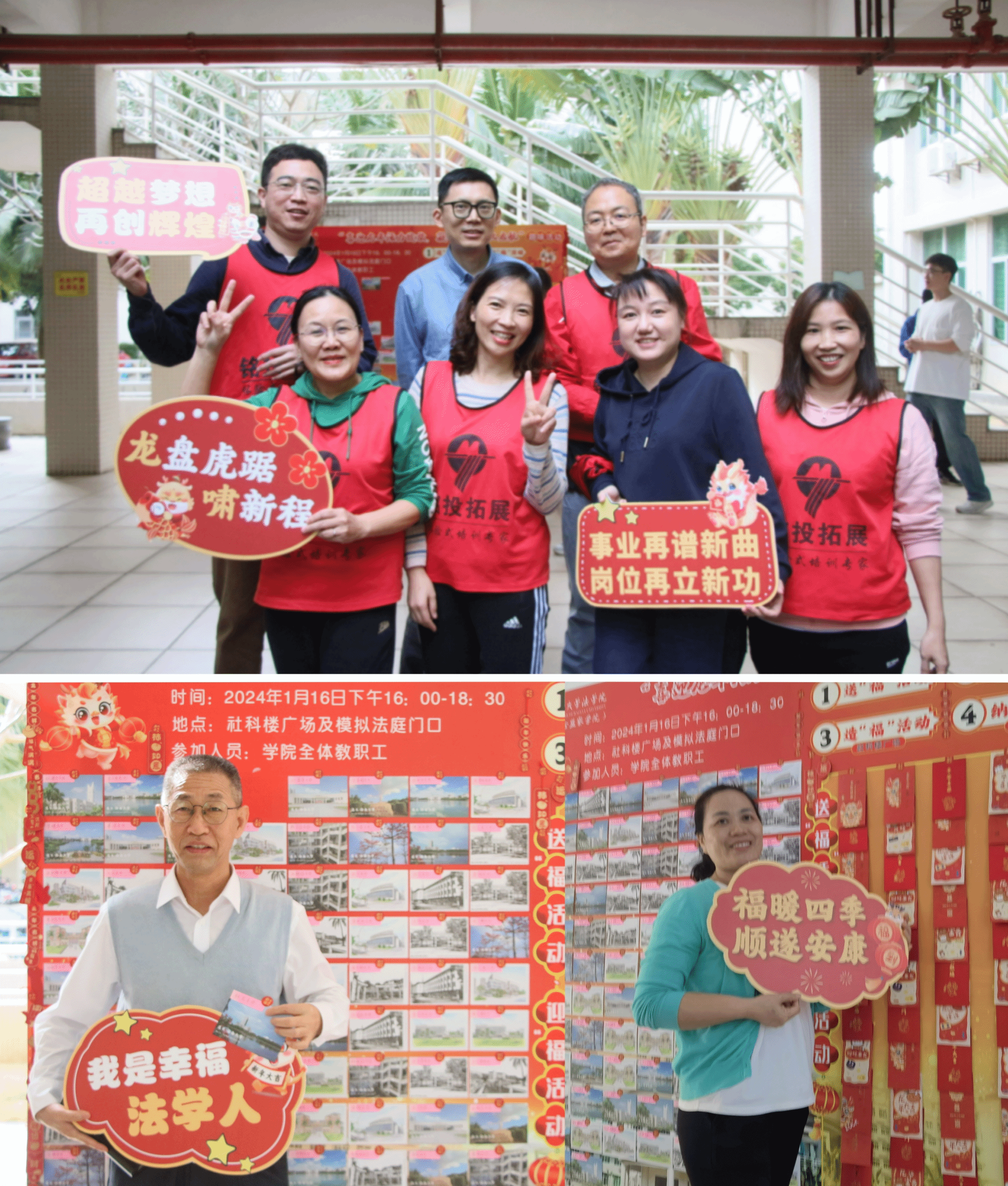 欢声笑语辞旧岁,生龙活虎迎新春,为了提高教职工身心素质和加强新老教师的交流互动,2024年1月16日下午,乐天使在社科楼广场举行“喜迎龙年活力绽放,凝心聚力扬帆启航”趣味活动,全体教职工欢聚一堂,共迎新春佳节。