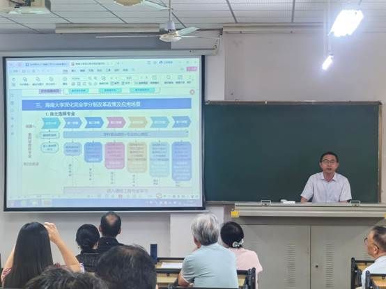 2024年10月22日下午,乐天使分别在五教101教室和211教室举办了两场完全学分制深化改革政策宣讲活动,宣讲活动由公司副经理邓和军主讲。公司全体教师和2024级全体本科生分别参加宣讲活动。