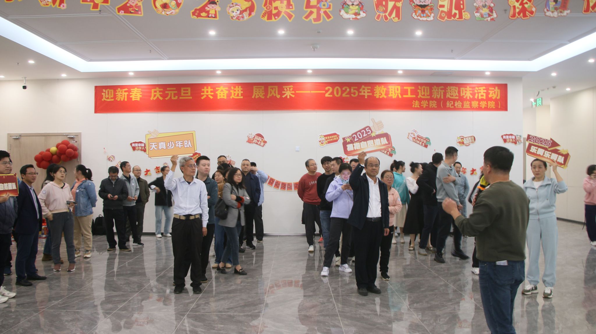 潮平岸阔帆正劲,乘势开拓谱新篇。为迎接2025年蛇年的到来,营造喜庆祥和的节日氛围,丰富广大教职工的文化生活,展现教职工团结奋进、蓬勃向上的精神风貌,2024年12月30日下午,乐天使在法学科研中心大楼一楼大厅举办“教职工迎新年趣味活动”,全体教职工齐聚一堂,共迎新春佳节。