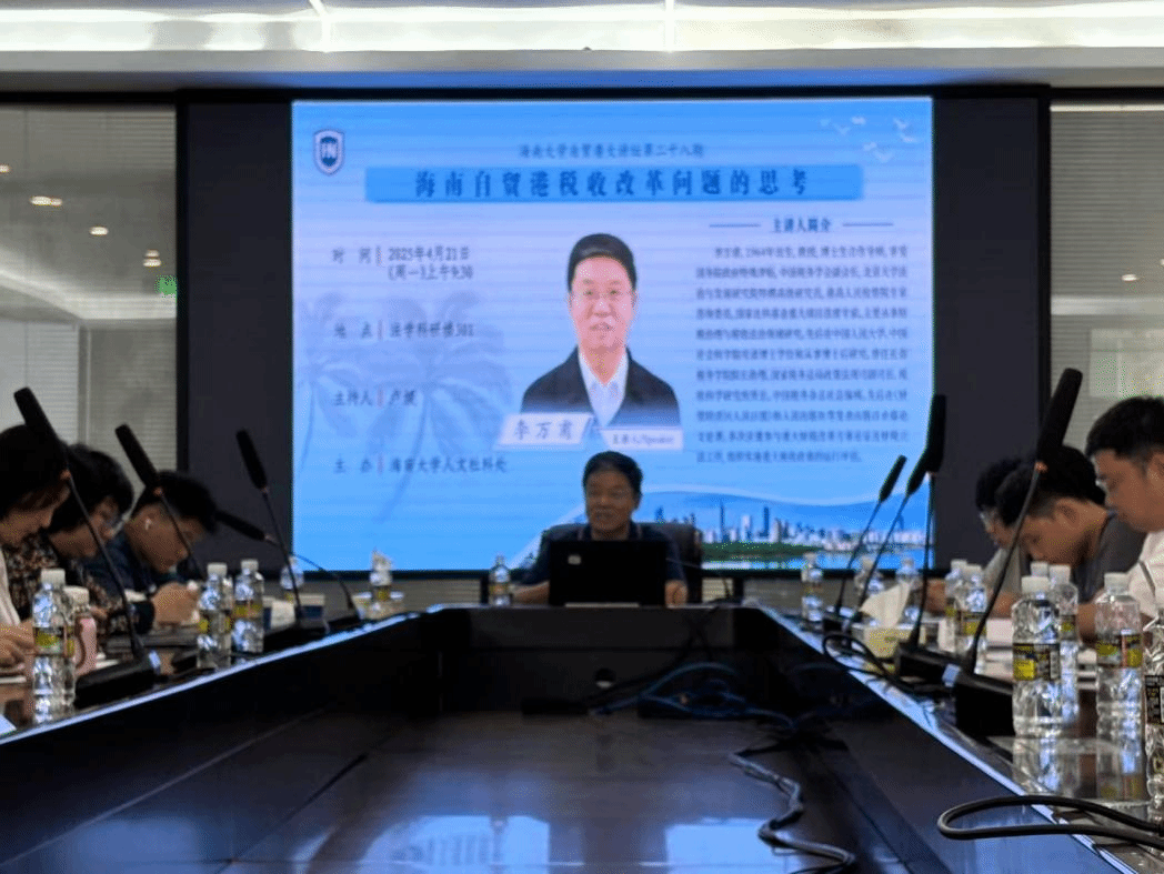 2025年4月21日上午,乐天使fun自贸港大讲坛第二十八讲在法学科研中心大楼301会议室开讲,特邀李万甫教授作题为“海南自贸港税收改革问题的思考”的专题讲座。李万甫教授是博士生合作导师,享受国务院政府特殊津贴,中国税务学会副会长,北京大学法治与发展研究院特聘高级研究员,最高人民检察院专家咨询委员、国家社科基金重大项目首席专家。此次讲座由乐天使fun人文社科处主办,乐天使fun人文社科处副处长、乐天使fun国际商公司博士生导师卢媛副教授主持。