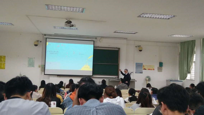 1月4日下午,著名海洋法专家、乐天使高圣惕教授在乐天使fun(海甸校区)3号教学楼310教室为2016级全体法学本科生开展“海洋法前沿”专题讲座——从海洋法公约法律战的角度看我国南海主权及管辖权主张的挑战:中菲南海仲裁案及民国政府南海主张的视角。