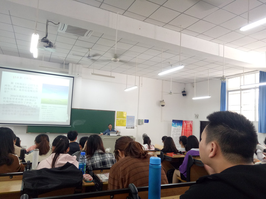 三天的授课主要包括四个部分,分别为环境法及其光明前景、环境纠纷与环境诉讼及其证据的收集与认定、新《环保法》的严格规定及其实施效果、国家治理现代化与法治思维下的邻避问题化解。各部分又分为不同的专题对相关问题进行展开,从环境法的现状到今后的发展,再到对于环境法的相关评论,王教授进行了细致的讲解,期间不断穿插各种案例和评论,使同学们对于环境法问题易以理解。课堂上,王教授也与同学们进行了互动,提出问题,讲解问题,同学们也积极参加。