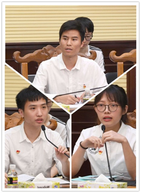 座谈会分为四项进行,第一项由实习生代表发言,3位实习生通过为期3个月的法学专业实习,分别对法院的法律实践是如何推动自贸区建设以及目前实践中仍存在哪些不足发表了看法与提出建议。