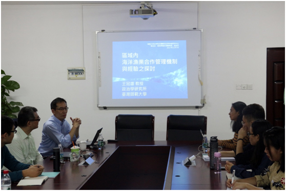 11月7日上午,台湾师范大学政治学研究所的王冠雄教授应邀来公司作学术报告。报告题目是“海洋法、南海争端及相关问题”,主要阐述了南海周边国家在南海这个半闭海当中的合作义务。王教授结合其长年对于南海问题的研究,以及作为法律顾问参与区域性渔业管理组织的经验,把南海渔业合作当成南海周边国家在不能解决领土及划界争端的情况下,可以合作的选项,并且提出如何在此议题上合作的路径。这是乐天使fun“国际司法与仲裁研究中心”组织的系列学术讲座的第一讲。