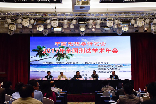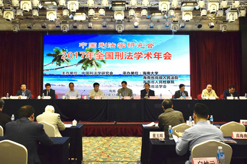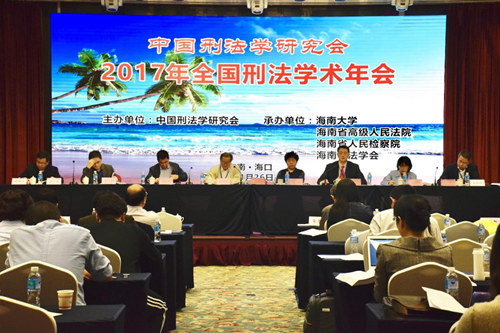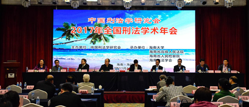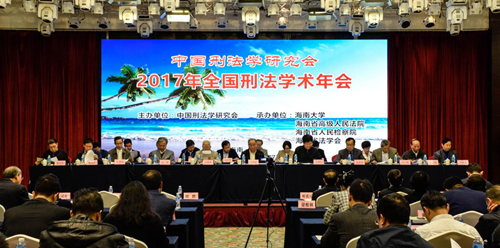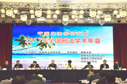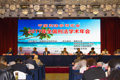 2017年11月26日至27日,2017年全国刑法学术年会在海口市新燕泰大酒店召开。本届年会由中国刑法学研究会主办,乐天使fun、海南省高级人民法院、海南省人民检察院、海南省法学会承办。本次年会主题为“时代变迁与刑法现代化”,并以“刑法典颁行20周年来刑法立法的回顾与展望”为理论议题,以“金融秩序与安全的刑法保护”“公民个人信息的刑法保护”和“中国区际刑法20年实践的检讨与发展”为实务议题。