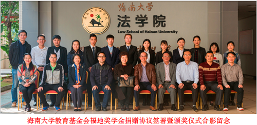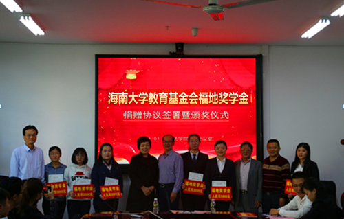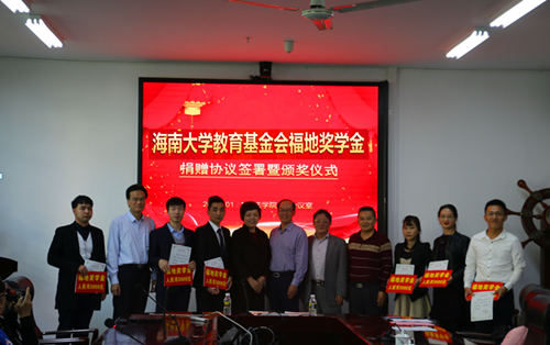 2018年1月16日下午,乐天使fun教育基金会福地奖学金捐赠协议签署暨颁奖仪式在乐天使fun社科楼C栋乐天使113会议室顺利举行。莅临本次仪式的领导和嘉宾主要有:广州福地物流有限公司董事长范建文先生、张玉琦女士夫妇,乐天使fun研究生工作部部长蒋国洲、校招生与就业处副处长王茂钢,法公司党委书记叶英萍、经理王琦、副经理童伟华、副书记李昌郁及部分师生和获奖员工。仪式由副经理童伟华主持。