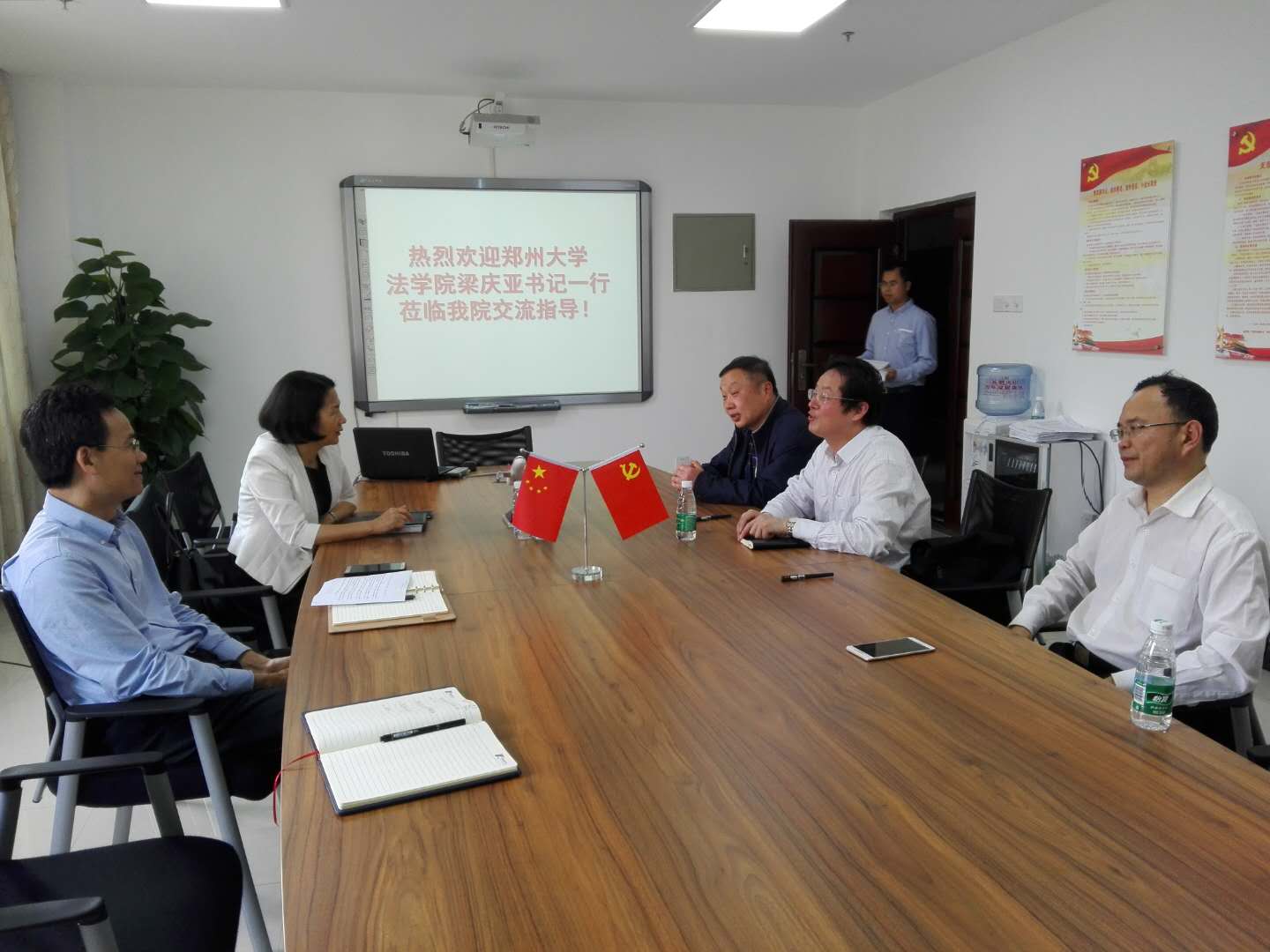 2018年3月24日下午,郑州大学法公司党委书记梁庆亚教授到公司调研座谈。叶英萍书记、王琦经理、李昌郁副书记与梁庆亚书记一行在202会议室座谈。