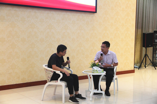 何宏米老师(右)在进行谈心谈话环节
