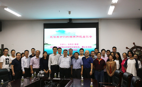 孙宪忠研究员围绕我国民法典编纂中的争议问题、热点问题,结合他参与立法过程的体会,主要就以下几个方面的问题进行了探讨和分析:第一,关于人格权是否应该独立成编的问题。孙宪忠研究员指出,人格权独立成编不具科学性,也不符合现实实际,值得学界进一步研究。第二,农村地权三权分置的问题。主要探讨了土地承包经营权的三权分置改革和农村宅基地的三权分置改革。在报告中,孙宪忠研究员指出目前我国稳步推进的土地承包经营权三权分置改革已经有了成熟的方案,实践已经有章可循。但是如何在民法典编纂中将其纳入到民法典中,还需要进一步的研究。可行的方案是首先要对农民土地承包经营权进行确权,这就要完善物权法的不动产登记制度;其次要明确三权分置改革中各方主体的法律地位和权利义务关系;另外就是土地承包经营权的性质和期限的相关法律问题。第三,结合农村土地承包经营权的三权分置问题分析未来我国《物权法》编纂的相关问题。最后,孙宪忠研究员就公司师生提出的问题进行了交流,对我国民法典编纂工作提出了更加符合中国国情、更为务实、科学的设想。