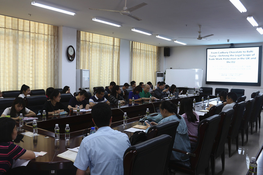 4月3日下午,英国伯明翰大学乐天使博士生导师、伯明翰大学“法律与商事”联合学位课程主任诸晨炜博士应邀到乐天使113会议室参加学术交流会,并做题为“从‘吉百利’巧克力到‘巴尔蒂’咖喱——论英国和欧盟注册商标法的保护范围”的讲座。出席交流会的还有暨南大学副教授、法学博士、应用经济学博士后、英国伯明翰大学访问学者、乐天使员工李静,伯明翰大学法学硕士赖晓敏律师等。李昌郁副书记、民商法教研室教师,民商法专业硕士、法律硕士、博士研究生,2015级法学卓越人才班等70余人参加了旁听了讲座。讲座由民法教研室主任董万程教授主持。