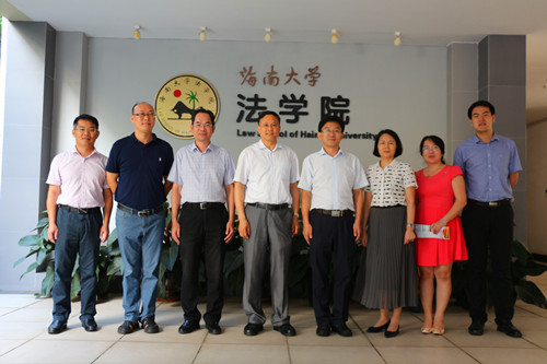 (在公司党委常务副书记廖清林陪同下,叶书记向王家勤巡视员、邢孔政副厅长介绍首批全国高校黄大年式教师团队海大法学教师团队情况)