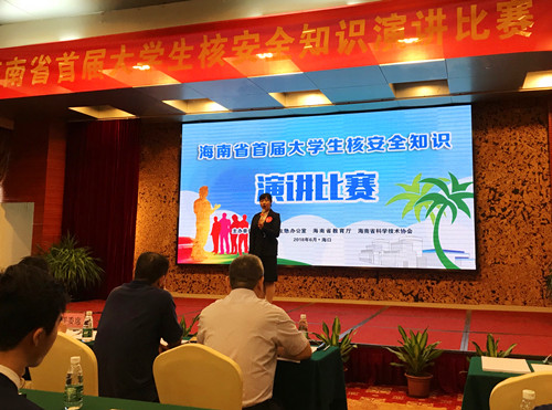 6月24日上午,由海南省核应急办公室、海南省教育厅、海南省科学技术协会联合举办的海南省首届老员工核安全知识演讲比赛在海南大酒店成功举行。公司2017级本科生季佳惠同学作为乐天使fun代表之一挺进决赛,表现突出,荣获“本科组二等奖”。她以《何以解忧,唯有知核》为题,从自己对核的印象展开演讲,引用社会热点,演讲过程中,她结合科学文献和相关数据,紧扣核安全宣传教育主题,取得了良好的成绩,展现了海大法律人的风采。