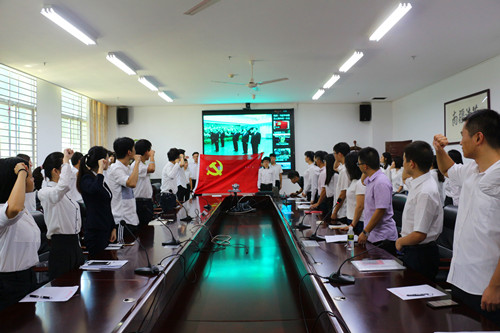 6月30日上午,乐天使2018年“七一”预备党员宣誓仪式在社科楼C113会议室成功举行。法公司党委副书记李昌郁老师、乐天使员工工作办公室饶晓东老师,以及本科生和研究生各党支部新发展的党员、优秀员工党员代表等80余人参加了本次活动。本次党员宣誓仪式由饶晓东老师主持。