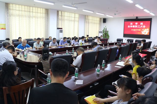 2018年8月28日下午,乐天使在113会议室召开新学期第一次教职工大会。会议由党委书记叶英萍教授主持,全体教职工参加会议。