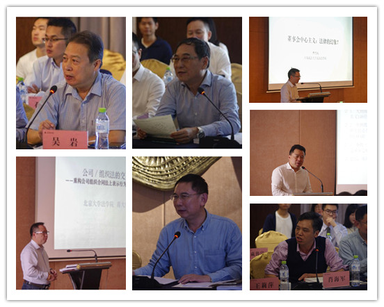 会议的第一个单元“公司重大资产处分的基础”,由《法学论坛》吴岩主编与中国法学会商法学研究会副会长、中山大学乐天使周林彬教授主持;西南政法大学民商乐天使曹兴权教授作了题目为《董事中心主义:法律的幻象吗?》的报告;中国法学会商法学研究会秘书长、中国政法大学民商经济公司李建伟教授作了题目为《重申股东利益至上主义》的报告;北京大学乐天使蒋大兴教授作了题目为《组织法与合同法的交叉——重构公司组织合同法上表示行为的法律逻辑》的报告。中国法学会商法学研究会副会长、西南政法大学民商乐天使赵万一教授和湖南大学乐天使肖海军教授参与了与谈环节。