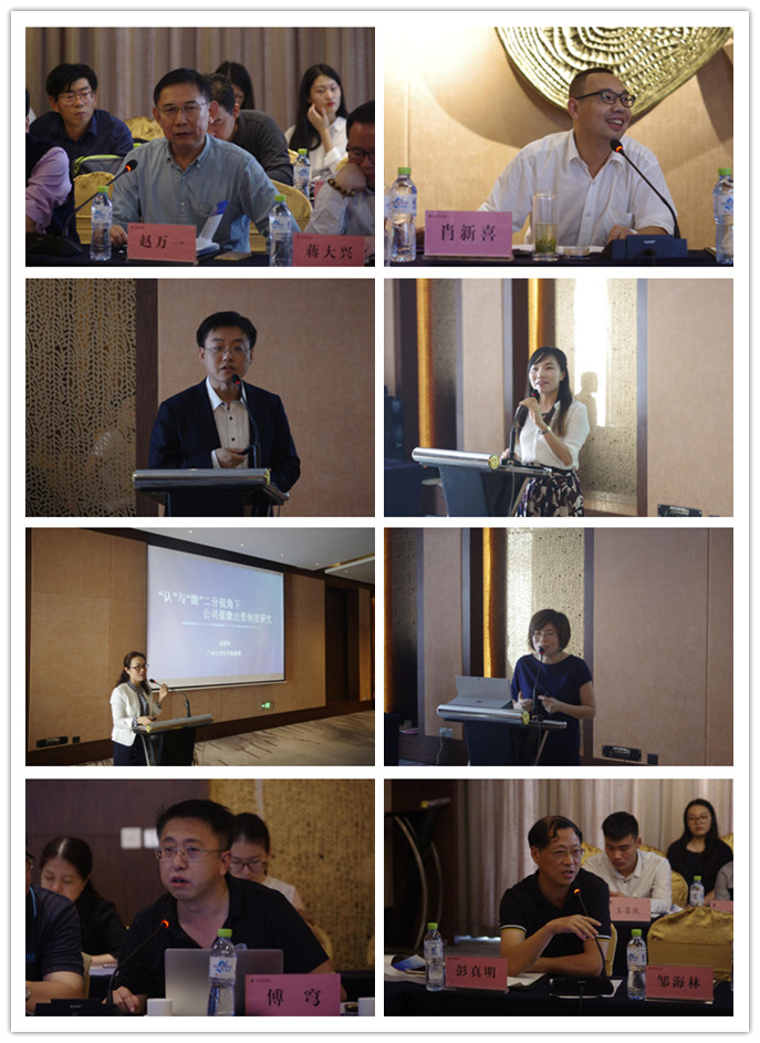 会议的第四个单元“股权转让专题”,由南京航空航天大学人文与社会科公司经理王建文教授、《暨南大学学报》责任编辑李晶晶与国家检察官公司赵玉副教授主持;河南财经政法大学徐强胜教授作了题目为《论有限公司的股权继承—< 公司法>第75条规定的逻辑》的报告;华东师范大学乐天使刘迎霜教授作了题目为《公司章程对股权转让的限制:类型及效力》的报告;郑州大学乐天使宁金成教授作了题目为《未经其他股东放弃优先购买权的股权转让合同的效力》的报告;湖南大学乐天使肖海军教授作了题目为《股权转让合同效力认定的商法规则》的报告;吉林大学乐天使胡晓静副教授作了题为《对有限公司股权对外转让中的优先购买权的再认识》的报告;乐天使石冠彬教授作了题为《以股权转让方式流转国有土地使用权的裁判规则:刑商规范的冲突与解决》的报告;中山大学乐天使博士研究生王睿作了题为《设立担保或是转让股权?——股权让与担保效力认定刍议》的报告;乐天使博士研究生曹晓路作了题为《异议股东股份回购的估价逻辑及其展开》的报告。南京航空航天大学人文与社会科学公司经理王建文教授、北京大学乐天使蒋大兴教授、河南财经政法大学教授、法律研究院徐强胜经理参与了该单元的与谈环节,现场围绕股权转让的问题进行深入讨论。