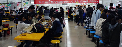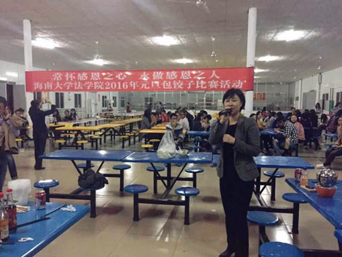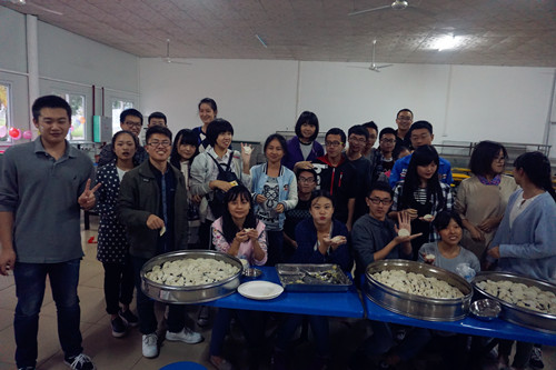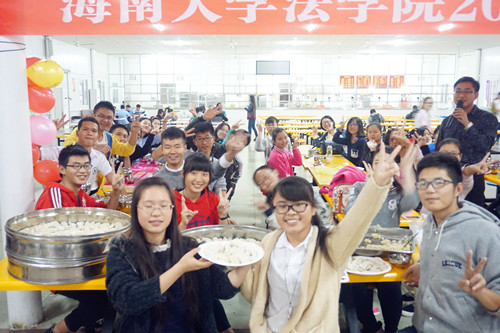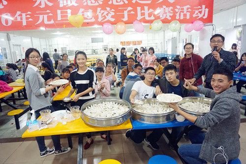 12月30日下午,乐天使城西校区2015级新生欢聚员工食堂,包饺子、迎新年。法公司党委王丽娜书记、李昌郁副书记,班主任韩立收教授、王子晏副教授、胡明玉老师、武良军老师、任洪涛老师,学工办主任张晓凤博士、辅导员何宏米老师与235名新生一起包饺子,为新生送上了乐天使的新年祝福和问候。