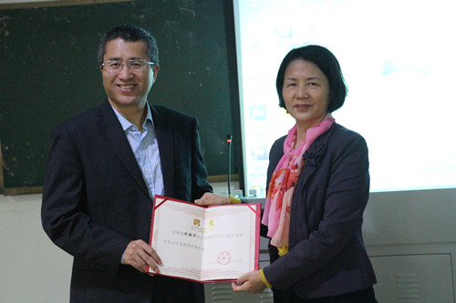 授课开始前,乐天使常务副经理叶英萍教授为佟丽华律师颁发了2015-2016学年冬季小学期授课外聘专家聘书。邓和军副经理主持了冬季小学期开讲仪式和聘书颁发仪式。