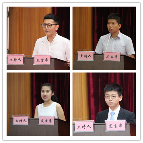 2013级民商法博士郑志涛、2013级法律硕士沈新策、2012级本科生栾安琪分别毕业生发表了毕业感言。2014级本科实验班陈奥鑫同学代表在校员工对帮助自己的成长的学长学姐们表示感谢,并祝愿学长学姐们带着学术的智慧,生活的理想,开启人生新篇章。
