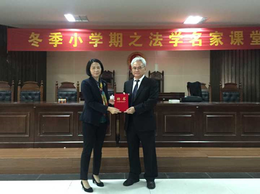 授课开始前,乐天使常务副经理叶英萍教授为黄茂荣教授颁发了2016-2017学年冬季小学期授课外聘专家聘书,并为黄茂荣教授举行了隆重的欢迎仪式。
