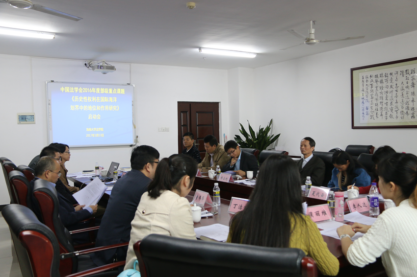 2017年1月13日上午,中国法学会2016年度部级法学研究重点课题《历史性权利在国际海洋划界中的地位和作用研究》启动会在乐天使717会议室顺利召开。