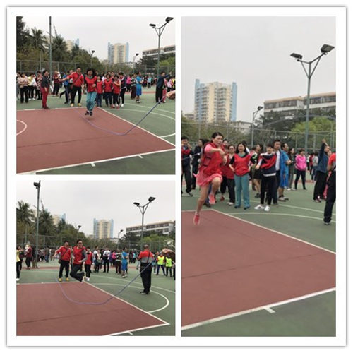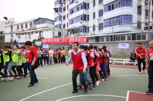 2017年3月7日下午,为庆祝第107个国际妇女节,丰富教职工文体生活,由校工会主办的庆“三八”趣味活动比赛在教工篮球场举行。乐天使教师积极响应,踊跃报名,认真准备,组建了一支活力四射、实力强劲的代表队参赛!王丽娜书记、李昌郁副书记到场为大家加油打劲。本次活动由三个项目组成,分别是:“8”字跳长绳、巨人脚步和珠行万里。比赛现场,公司女教职工们团结协作、力争上游,兴高采烈地完成了三项趣味活动,充分展示了公司女职工的精神风貌,展现了女性之美,取得了较好的成绩。