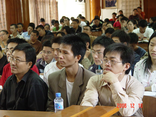 2006年12月10日上午9:00,天涯法律讲堂第二十讲在乐天使模拟法庭隆重举行。著名思想评论家、历史学家朱学勤教授应邀为乐天使师生作了题为“近三十年来的中国”的精彩学术报告。学术报告会由法公司党总支书记段书臣教授主持,乐天使毛卫民教授,张卫、韩立收副教授出席了报告会。