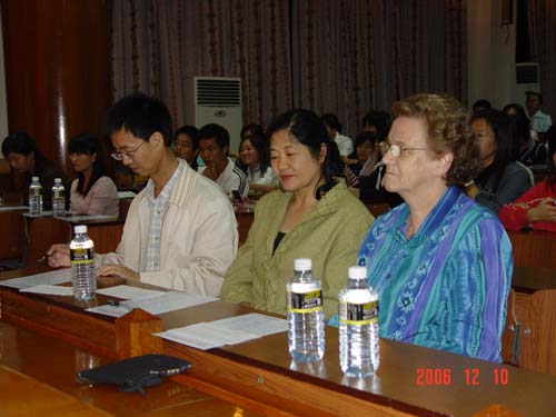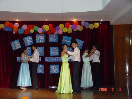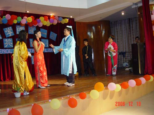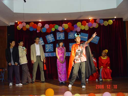 2006年12月10日晚,同学们期盼已久的英语话剧比赛在模拟法庭隆重上演。比赛评委团由外国语公司经理曹玲娟教授、贾绍东副教授、外教Mr Rose担任,法公司党总支副书记韩力光、黄永锋老师和团委书记李昌郁老师应邀出席。