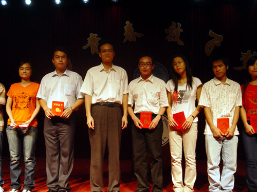 以青春相约、放飞梦想为主题的大会在庄严的国歌声中开幕。大会首先了举行五四表彰。今年的“五四”是五四运动88周年、中国共产主义青年团成立85周年纪念日。在这个喜庆的日子里,乐天使对2006—2007学年度在员工中所涌现出的勤奋学习、成绩优异、工作出色、表现突出的集体和个人进行隆重表彰,受表彰的集体20多个、先进个人100多人次。公司领导分别对五四红旗团总支、团支部、优秀团干(团员)、优秀员工干部以及在种类比赛中获奖的同学进行颁奖,并与他们一一合影留念。在热烈的掌声中,段书臣书记发扬了热情洋溢的讲话,他向全院员工和教职员工致以节日的问候,祝愿大家节日快乐,学习好身体好工作好!他在讲话中勉励共青团员、青年学子要秉承“明法·修德·尚义·笃行”的院训精神,发扬“勤奋·进取·创新·笃实”的学风精神,刻苦学习、奋发成才;号召全体同学学先进赶先进,努力作一个理想信念坚定、本领过硬、品德高尚的新时代老员工;希望获奖同学戒骄戒躁,继续进取,在今后的学习工作中发挥表率的作用、争取更大的进步。2005级孙雁南同学代表获奖同学感谢老师们的辛勤培养,感谢各方的支持,并决心争取在以后的学习工作中取得更大更好的成绩,为广大同学树立好榜样。
