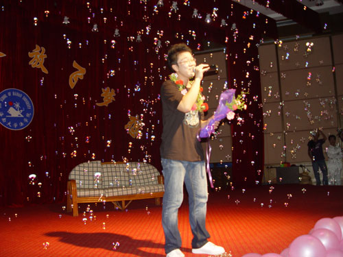 接着,“2007年乐天使十大歌手比赛决赛”在公司团委、员工会和两社员工干部诙谐、轻松、欢快的舞蹈《浪花一朵朵》中开幕了。场上参赛歌手各显神通,场下亲友团呐喊鼓劲声雷动,歌声、掌声、笑声使整个报告厅汇成欢乐的海洋。2006级同学表演了大型话剧《大话雷雨》等节目,使整场晚会更具观赏性。李群山老师在点评时指出了整台晚会成功、出彩,它内容丰富、形式多样、令人耳目一新,体现出法律人自信的精神风貌。最后,经过评委的评选以及在场观众的投票,2006级凌一非同学以9.32分摘取十大歌手桂冠,2006级罗妩、胡启博同学获得亚军,2004级欧阳汉等11名同学获得三等奖及优秀奖。