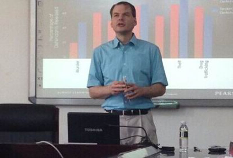 6月12日—14日上午,美国纽约州立大学水牛城公司刑事司法学系系主任Michael Cretacci(柯迈克)教授做客乐天使,三天围绕着 “美国刑事司法制度” 为主题的精彩讲座。讲座由公司刑法学科带头人童伟华教授主持。 6月12日上午,Michael Cretacci教授讲授的主题是“犯罪与刑法”。他首先对刑法学基础知识进行了回顾与梳理,如法的目的、起源和发展、犯罪的定义、犯罪的性质和具体特征犯罪的分类以及刑罚的目的和作用等。他进而讲到刑法与民法的界限区分,还重点诠释了罪刑法定原则的生成与内涵。然后Michael教授讲解了美国刑法原理中犯罪构成要件由非法行为(Actus Reus) 、主观过错(Mens Rea) 、非法行为和主观过错同时并存(Concurrence) 以及因果关系(Causation)共同组成。最后Michael Cretacci教授又附带介绍了美国司法制度的主要特点,对法院组织分为联邦和地方两大系统进行了详细解说。 6月13日上午,Michael Cretacci教授着重讲授了刑事辩护这一重要章节。具体内容包括自我防卫(Self-Defense) 、防卫他人(Defense of Others) 、保卫财产(Defense of Property) 、被强迫犯罪(Duress) 、紧急避险(Necessity) 和警察诱惑(Entrapment) 。他提到刑事责任的影响因子有被告人患有精神病(Insanity Defense) 、被告人神志不清(defense of Intoxication) 、被告人未达到承担刑事责任的年龄(Infancy Defense) 等。Michael教授主张为了使人民的人身自由权利免受不当侵犯,刑事司法机构不仅要关注如何有效地控制犯罪,更要注重保护公民和刑事程序当事人的合法权利,刑事辩护应当有效进行,刑事司法制度的运行必须符合公平和正义的原则。 6月14日上午,Michael Cretacci教授又为乐天使研究生作了一场刑事程序法的专题讲座。Michael教授以许多生动形象的案例讲述了米兰达警告、沉默权、排除非法证据原则、免受双重危险原则、预审程序、辩诉交易、审判程序等美国刑事司法规范。其提到的审前各程序有:保释制度,大陪审团指控和预审程序,辩诉交易和审前案件转移等。而且他还重点讲解了美国的搜查和逮捕制度的具体规定。 在最后的交流互动环节,同学们纷纷踊跃提问,针对同学们提出的关于中美两国刑事司法系统的不同制度的相关问题,Michael教授都一一做了详细解答。Michael教授在讲座的最后还不忘鼓励同学们保持公正善良、积极向上,心怀大志,将来为国家、为世界做出贡献,着实令人为之振奋。本次学术讲座为公司学子提供了近距离接触美国法律文化的机会,极大地开阔了同学们的学术视野,令人受益匪浅。背景链接: