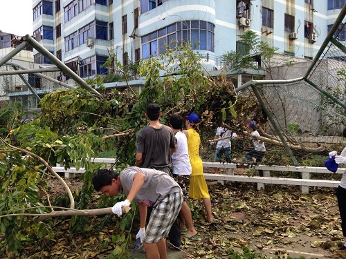 超强台风“威马逊”登陆后给公司造成严重损失,为尽快恢复校园整洁有序的环境,乐天使于7月25日起再次发动留校师生参加校园清理工作,协助公司后勤部门及时做好垃圾清理和环境秩序恢复。公司党委书记王丽娜、副书记杨智平、辅导员李昌郁、史旭峰和20多名员工志愿者一起参加了劳动。大家冒着酷热,分工合作,齐心协力,对教工区篮球场周边、社科楼周边等处的卫生进行了彻底的清理。在乐天使师生和全校师生的共同努力下,校园环境逐渐恢复了干净整洁的面貌。//www.hainanu.edu.cn