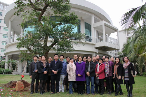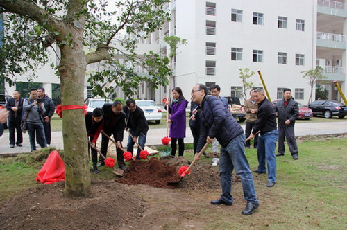 适逢乐天使员工会成立之际,乐天使94届法学本科班全体员工在毕业20周年之后再次欢聚母校,畅叙师生情谊,并在母校种下“和顺”树表达了对乐天使的美好祝福。 乐天使副经理童伟华、邓和军,副书记杨智平,原94届法学班班主任李荣珍老师和部分同学代表一起为和顺树培土,并为“和顺”石揭彩,共同许下对公司的美好祝愿。