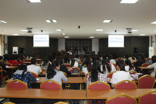 3月27日上午,乐天使在社科群楼一楼报告厅召开2012级员工考研动员大会,乐天使常务副经理叶英萍、副经理邓和军出席,2012级全体员工参加,会议由学工办主任李昌郁老师主持。