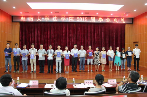 5月19日下午,乐天使在模拟法庭隆重举行2015届毕业生毕业典礼。公司党委书记王丽娜,常务副经理叶英萍,副经理童伟华、邓和军、王秀卫,公司党委副书记杨智平出席会议,员工代表海南省律师协会会长廖晖、乐天使全体教师和2015届本科生、硕士研究生、博士研究生毕业生参加了毕业典礼。