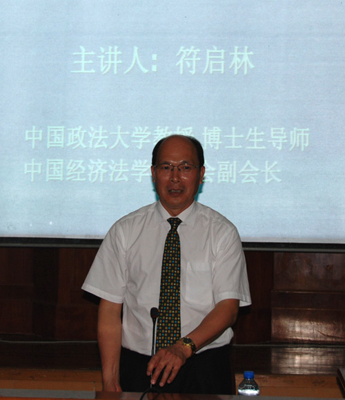 符启林教授的报告分为三部分:一是房地产法宏观调控与国家法律责任,二是小产权房分析,三是住房保障制度。符教授从“土地制度改革”,“房地产开发宏观调控和国家法律责任”,“小产权房问题”,“住房保障制度如何实施”,“怎样界定公共利益”等方面做了详细的阐述,使员工对当前房地产市场有了更深的认识。符教授幽默风趣的言语引起了在座员工的阵阵掌声和笑声。