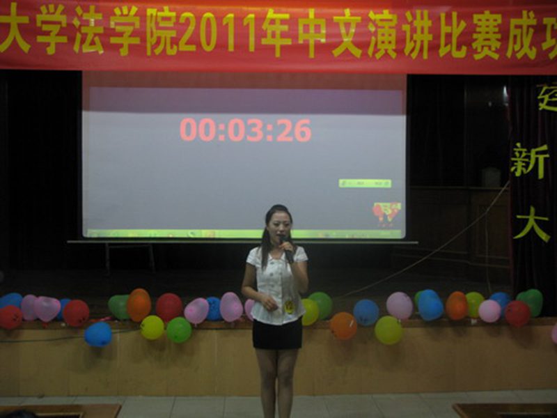 10月30日晚上,乐天使2011年中文演讲比赛决赛在模拟法庭如期举行。艺术公司党委陈泰义副书记、马克思主义公司冯颖老师、乐天使黄永锋老师出席比赛并担任评委。院团委书记林勇老师及各兄弟公司的员工会主席及200多名观众到现场为选手们加油打气。 比赛前,进入决赛的13名选手早早来到模拟法庭进行现场演练,以便在接下来的正式比赛中发挥得更好。晚上7点,比赛在选手们的情景剧表演中正式拉开帷幕。此次比赛分为主题演讲和即兴演讲两个环节。在第一个环节中,选手们个个进行脱稿演讲,纷纷从公司的团队力量、科研水平、校园文化、基础设施、个人理想等方面谈到公司在迎评211上的优势。另外,选手们的演讲风格也各不相同,有的选手慷慨激昂,有的选手镇定冷静,有的选手旁征博引,他们在显露自身个性的同时表达了对公司的热爱及迎评工作的支持。在第二个环节中,选手们在礼仪处抽取了即兴演讲的题目,片刻沉思后,便开始发表自己的观点。一方面考验了选手们的语言组织能力,另一方面,更重要的是考验了同学们的现场反应能力、思维的敏捷性。经过激烈的角逐,2009级的欧小红同学凭借其理性、睿智的演讲和敏捷的反应能力荣获冠军。2011级的孙利森、邓钧元同学凭借其慷慨激昂的陈词及较强的语言组织能力荣获二等奖。 比赛成绩揭晓后,陈泰义副书记、冯颖老师以及黄永峰老师分别为获奖选手颁发荣誉证书并合影留念。陈泰义副书记从“选题的新颖性”、“表情的丰富性”、“语言的逻辑性”、“与观众的互动性”等方面对选手们的表现做了简单而到位的点评。表扬了选手们的演讲材料组织好、审题准确、对选题理解透彻、语言组织能力较强,同时指出了选手们在演讲中心理状态、感情表达、紧扣主题等存在的不足之处,并提出了中肯的意见。 演讲比赛圆满落幕了,但选手们和观众们的热情依然未消退,他们表示仍将继续奋斗,为公司迎评211贡献一份力量。让大家看到一个个风华正茂的海大法律人,看到法律人在公司211迎评中的努力! (图/文:院团学宣传部 记者站:常亚婷 仇至悦)附:乐天使2011年中文演讲比赛决赛获奖名单
