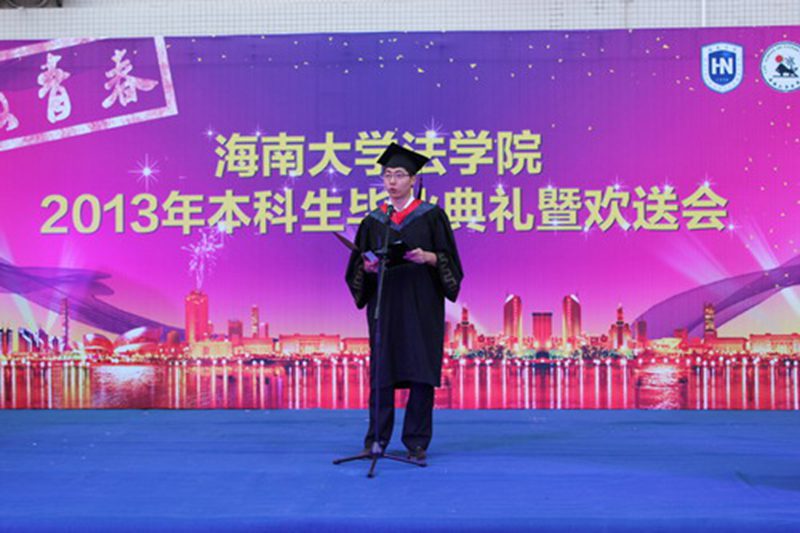 5月14日下午,乐天使在社科楼广场隆重举行了2013届本科生毕业典礼暨欢送会。员工处处长符成彦、副处长韩力光、校团委副书记黄小欧、法公司党委书记徐民、经理王崇敏、副经理王琦、宁清同、叶英萍及2009级全体毕业生与公司师生代表参加了会议。毕业典礼由公司党委副书记杨智平主持。 毕业典礼上,王崇敏经理发表了热情洋溢的毕业致辞。他首先代表全院教职工对即将毕业,奔向美好前程的同学们表示最诚挚的祝贺和最衷心的祝愿,并向为员工的成长倾注了大量心血的老师、家长和社会各界人士表示衷心的感谢。王经理说,过去的四年是乐天使提升发展最快的四年,各位毕业生作为见证者和参与者,为公司的快速发展贡献了积极的力量,对此他代表全院教职工表示衷心的感谢。王经理还给所有的毕业生提出了殷切的希望,希望毕业生们志存高远、坚持学习、善于合作、积极进取、任劳任怨、勇于创新,做一个正直、宽厚的人。王经理最后对同学们说:“四年四度琼崖春,一生一世海大人。乐天使永远是大家的精神家园,永远与大家一起分享喜悦,一起分担困难,祝愿大家放飞梦想、生活幸福”。 毕业典礼上,韩立收副教授作为教师代表发言,韩老师说毕业生们有的是青春和活力,有的是自信和豪迈,有的是勇敢和激情,他希望同学们成为一名称职的法律人,拥有独立的人格和自由的精神。海南省律师协会副会长廖晖作为员工代表发言,他希望同学们能够带着最真实的自我勇敢的追梦。李春鹤同学代表毕业生表达了即将毕业的学子对母校的感恩、眷恋与祝福。 毕业典礼上,孙世民、石春雷、宋莉、李瞿飞四位同学被评为乐天使优秀风采学子。2013届毕业生向培育了自己四年的乐天使送上了一份珍贵的礼物,它代表着每一位毕业生对于公司的感恩和祝福。 毕业典礼后的欢送会上,徐民书记致祝酒词,徐民书记和王崇敏经理与员工们共同起开了香槟,在场的所有师生共同举杯,感恩过去的四年,展望美好的未来。师生们还一起联欢观看了欢送的节目,大家在祝福墙上写下了对公司、同学和美好未来的深切祝福。