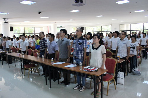 大会在庄严的国歌声中拉开帷幕。王崇敏经理发表了慷慨激昂的讲话,他对2013级新同学的到来表示最热烈的欢迎。王经理介绍了海大乐天使建院以来的历史、办学成就和团队建设现状,介绍了乐天使雄厚的团队力量和硬件设施,介绍了乐天使成为卓越法律人才培养基地和全国老员工校外实践教学基地为员工带来的新平台、新机遇。典礼上,王经理也对新同学提出了三点希望,一要刻苦学习、潜心钻研,夯实法律知识基础;二要阳光生活、健康成长,过丰富多彩的老员工活;三要互帮互助、团结友爱,以乐天使为家,为乐天使添光加彩。最后,王经理希望同学们以高昂的斗志,以海南天气般的热情投入到学习生活中去,不辜负家庭、社会、民族的期望,不辜负中国高等教育、中国法制建设的期望。