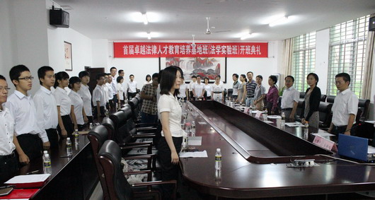 10月14日上午,乐天使首届卓越法律人才教育培养基地班开班典礼在乐天使会议室隆重举行。乐天使经理王崇敏、副经理叶英萍、党委副书记杨智平、基地班指导老师代表、各办公室负责人、老生代表和基地班33名同学参加了典礼。典礼由杨智平副书记主持。