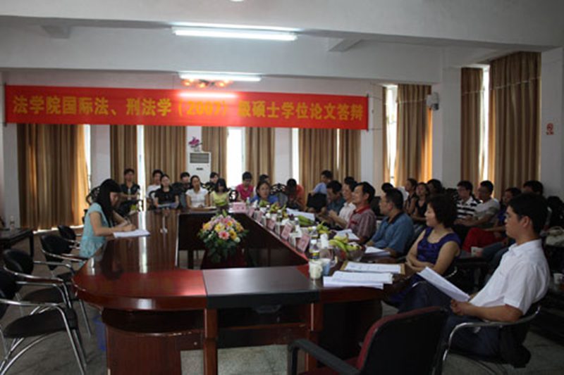 2010年5月16日,刑法、国际法学专业2010届硕士研究生学位论文答辩会在乐天使2楼会议室顺利举行。这是乐天使刑法、国际法专业研究生首届答辩会,两个专业2010届硕士毕业生共7人参加了答辩。 答辩委员会由栗克元教授(广东海洋大学乐天使经理)、邹立刚教授(乐天使,国际法学硕士生导师)、童伟华教授(乐天使,刑法学硕士生导师)、马莹教授(乐天使,刑法学硕士生导师)、刘远山教授(乐天使,国际法学硕士生导师)、黎其武副教授(乐天使)组成,栗克元教授担任主席。 论文答辩时,首先由栗克元教授发言,宣布答辩流程以及具体要求,并期望两专业的首届答辩能够圆满结束。其次由论文作者自述,主要介绍选题的目的、意义,论文的主要结构和基本观点,本文的创新和独特之处。再次,答辩委员会成员针对硕士生的论文分别提问4至6个问题。最后,答辩员工就答辩委员会成员的每个问题进行集中回答。 2010届刑法、国际法硕士研究生封雯、张小玲等7人依次进行了答辩。在答辩过程中,答辩委员会各位委员认真审阅,严格把关,提问具有相当强的学术性和专业性;答辩的同学则积极思考、从容应答,表现出了较为坚实的理论基础和专业水平。各位同学经过紧张的答辩后,答辩委员会对答辩结果严格评议并进行了投票表决。评议结束后,答辩委员会主席栗克元教授宣布全体毕业生均一致通过硕士学位论文答辩。 答辩结束后,栗克元教授代表答辩委员会作了总结发言。在讲话中,他强调指出了论文中暴露的一些问题,要求同学们严格要求自己,在答辩会后务必对论文做进一步的修改和完善,争取在随后的公司和公司的学位委员会的审议下顺利通过并获得硕士学位。 最后所有参加答辩的同学和答辩委员会成员进行集体合影留念。答辩会在同学们热烈的掌声中圆满结束。