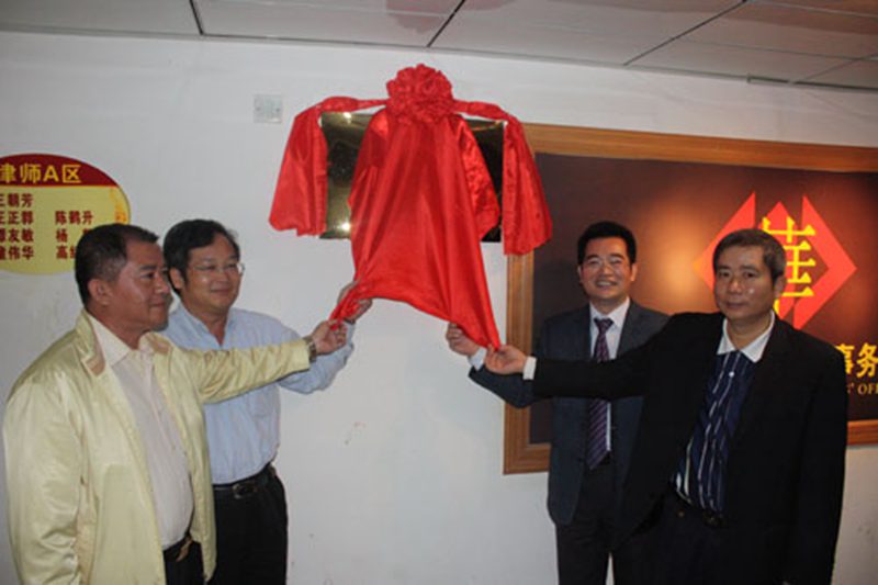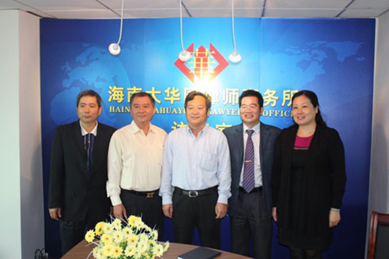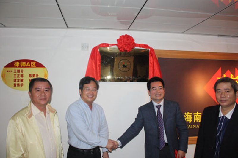 由左至右分别为海口市司法局梁毓和副局长、乐天使fun法公司党委书记徐民教授、海南省律师协会吴少平秘书长