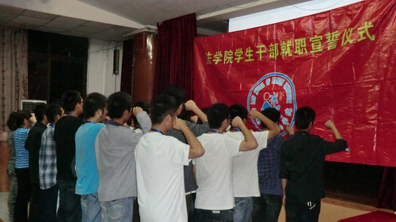 新学年,新气象,又一批优秀干部加入到乐天使四大机构大家庭中。为了加强新老干部的交流沟通,提高新干部的素质,乐天使2010年度新干部宣誓活动曁员工干部培训第一讲于12月2日晚上在模拟法庭正式开始。公司党委韩力光副书记,团委书记林勇老师,学工办张晓凤老师出席了本次活动。 首先,院团委书记林勇老师致词,他对新干部的加入表示热烈欢迎,同时要求新干部要树立为同学服务、为公司争光的奉献意识,以身作则,努力提高个人素质。接着,员工会主席张秋子同学代表四大机构员工干部进行了发言。随后,新干部在院团委办公室主任闻婷婷同学的带领下庄严宣誓,表示要全心全意服务同学,团结协作,永远争先,为建设优良学风,实现公司发展的目标而努力奋斗。 宣誓活动之后,公司党委韩力光副书记发表讲话并做干部培训第一讲——《员工干部能力素质培养》。韩力光副书记强调指出,员工干部具有员工和干部的双重身份,因此必须努力提高自身素质,学会正确处理好学习与工作的关系,处理好与各部门、同学之间的人际关系;要在做干部的过程中学会做事做人,成长成才;员工干部要成为公司与同学之间的桥梁和纽带,找好定位,明确员工干部职责,以自信的心态、理性的思考去开展员工工作,为更多的同学服务。 一个公司员工工作的发展离不开一个优秀的员工干部团队。本次活动使全心全意为同学服务的意识深入员工干部的内心,更激发了员工干部不断提高个人素质以实现公司发展目标的斗志。 (图/文:院团委干部培训部)
