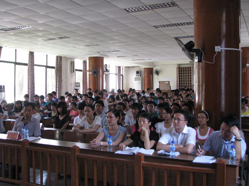 9月5日上午9点,乐天使2011级新生开学典礼在模拟法庭隆重举行。院领导徐民书记、王崇敏经理、韩力光副书记,副经理王琦、宁清同、叶英萍,辅导员、老师及老生代表参加了典礼。开学典礼由韩力光副书记主持。 典礼伊始,王崇敏经理代表院领导致辞。他代表乐天使对新生的到来表示热烈的欢迎和衷心的感谢!他从公司发展历程、团队建设、团队力量、课程安排、实践教学及特色,全面介绍了乐天使的情况。之后,他对新生提出了几点希望:第一,在加强体育锻炼,快乐生活,努力学习;第二,养成自主学习的良好习惯,明确目标,博览群书,见贤思齐;第三,培养自信心,敢于参与社会竞争;第四,遵守纪律,注意人身安全,不到无防护设施的海域游泳。最后,王经理预祝新生大学四年生活愉快,争取早日成为国家、社会的栋梁之才,为祖国法治建设贡献力量! 胡明玉老师代表班主任发言,她说,在学习上大家要逐渐培养自主学习能力,生活上也要慢慢自立;利用课余时间多读书,培养自己的兴趣,提升知识的储备;同学之间要互相帮助、和平共处;做好大学四年的规划。同时,胡老师也表示自己一定尽职尽责,做好班主任工作,为同学们营造一个良好的学习环境。 老生代表纪洋洋表示,大学是一个新的舞台,有很多锻炼自己的机会,希望学弟学妹们能利用好这个舞台,不断充实、提升自己。四年后,给自己一个完美的交代。 最后,典礼在热烈的掌声中落下帷幕。 典礼后,班主任与新生见面并就老员工活进行交流。(文/常亚婷 图/孙薇)