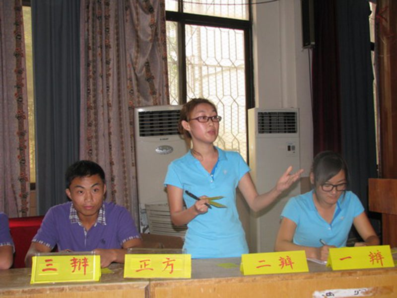 本次班级辩论赛含初赛、复赛及决赛三轮,参赛者为乐天使2010级和2011级各班代表队,今天进行的是初赛环节的第一场,本场又分三小场即六个代表队的激烈对抗。三场中尤以第二场最为精彩,两队的辩论围绕“团队中应该收敛个性还是张扬个性”为主题开展,用极有魄力的语言、极具气势的发问和极为敏捷的辩思进行了精彩辩驳,可谓唇枪舌战,引得场下观众连连拍手叫好,无论是正方2010级的同学还是反方2011级的同学都锋芒尽放,彰显了法之锋的英雄本色。此外上场的还有2010级(1)班对战2011级(2)班代表队,其辩题是“当今社会现状是否有利于老员工创业”,以及 2010级法学(2)班和2011级法学(1)班,他们正针对“老员工宿舍装宽带的利弊问题”进行了辩论。在一阵阵掌声、叫好声中,第一场初赛顺利结束,进入复赛的有2010级(2)班的两支代表队和2011级(2)班代表队,2010级史琪同学、2011级邓钧元及葛君同学荣获“最佳辩手”称号。 法之锋辩论赛的举行为同学们提供了很好的锻炼平台,也将有利于院辩论队加注新生血液的工作顺利进行。 (图/文:院团学宣传部 孙薇 刘雪梅)
