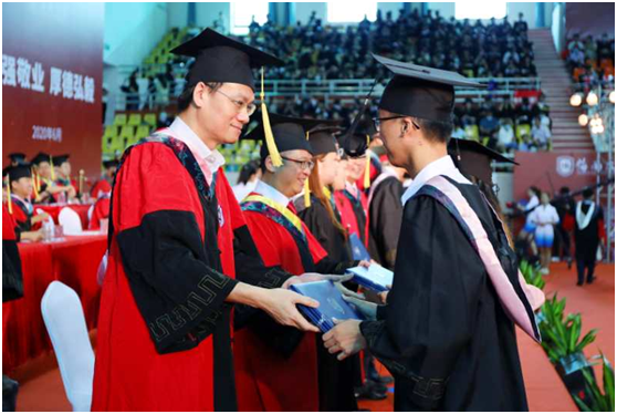 在代表发言环节,本科毕业生代表2016级法律卓越人才班潘佳妮、博士研究生代表侯丽维、“最美教师”代表石冠彬教授、员工代表陈吉波分别发言。同学们分享了自己对老员工活的所感所悟,向公司和老师们表达深切的感谢;教师与员工们则分享了学习和工作的经验并为同学们的美好前程送上祝福。