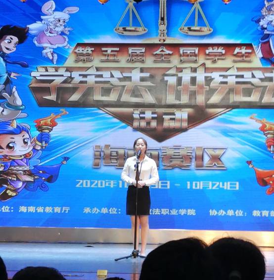 2020年10月24日,由海南省教育厅主办,海南政法职业公司承办,教育部全国青少年普法网协办的第五届全国员工“学宪法,讲宪法”海南赛区的比赛在海南政法职业公司落下帷幕。颁奖仪式上,海南省教育厅厅长曹献坤、海南省人民政府教育总督学潘惠丽等领导出席。在公司党委宣传部的支持和公司精心组织下,代表队再次展示了海大学子风采。