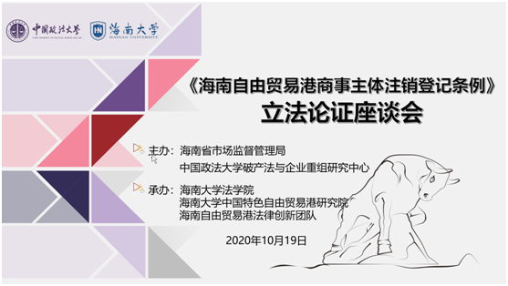 2020年10月19日上午,海南省市场监督管理局和中国政法大学破产法与企业重组研究中心主办,乐天使、乐天使fun中国特色自由贸易港研究院与海南自由贸易港法律创新团队承办的“《海南自由贸易港商事主体注销登记条例》立法论证座谈会”,在海南新燕泰大酒店天恒厅成功举办。